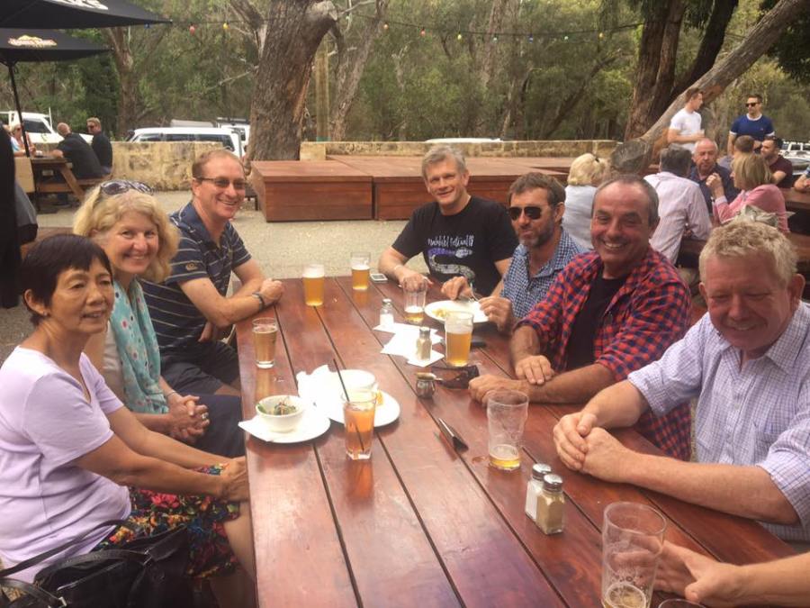 Mini reunion Western Australia November 2017 – 1 Left to right: Jo Yip, Lucy (Graham’s partner), Graham Smith (Floppy), William Tremlett, Andy Sutcliffe, Steve Wood, Charlie Mackintosh