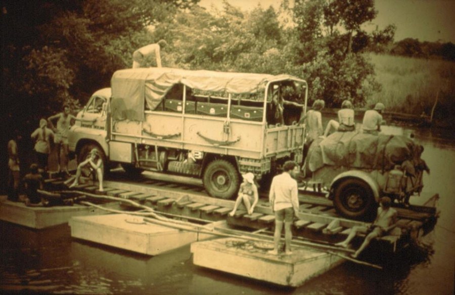 Africa Northbound September 1975 led by Freddy Glaser (who left the trip in Nairobi and handed over to John Scully), Bob Sheldon, Alan Townsing. The photo was taken mid-November 1975 between Yambio and Zemio, Central African Empire (between Juba and Bangassou)