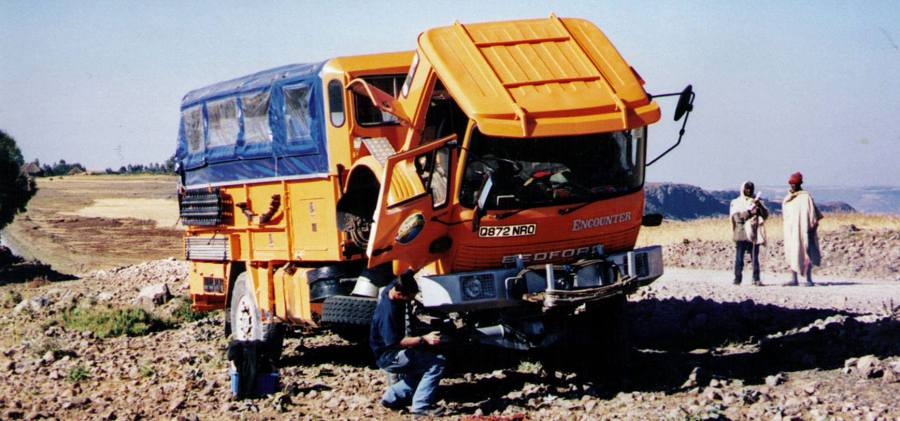 Wayne Moore suffering from malaria and a truck problem in Ethiopia Dec 1999 – but at least us punters were nice!